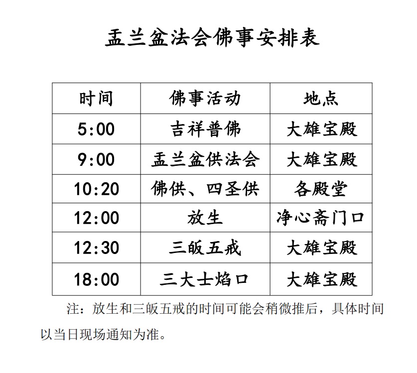 六祖寺七月十五佛事安排如下: